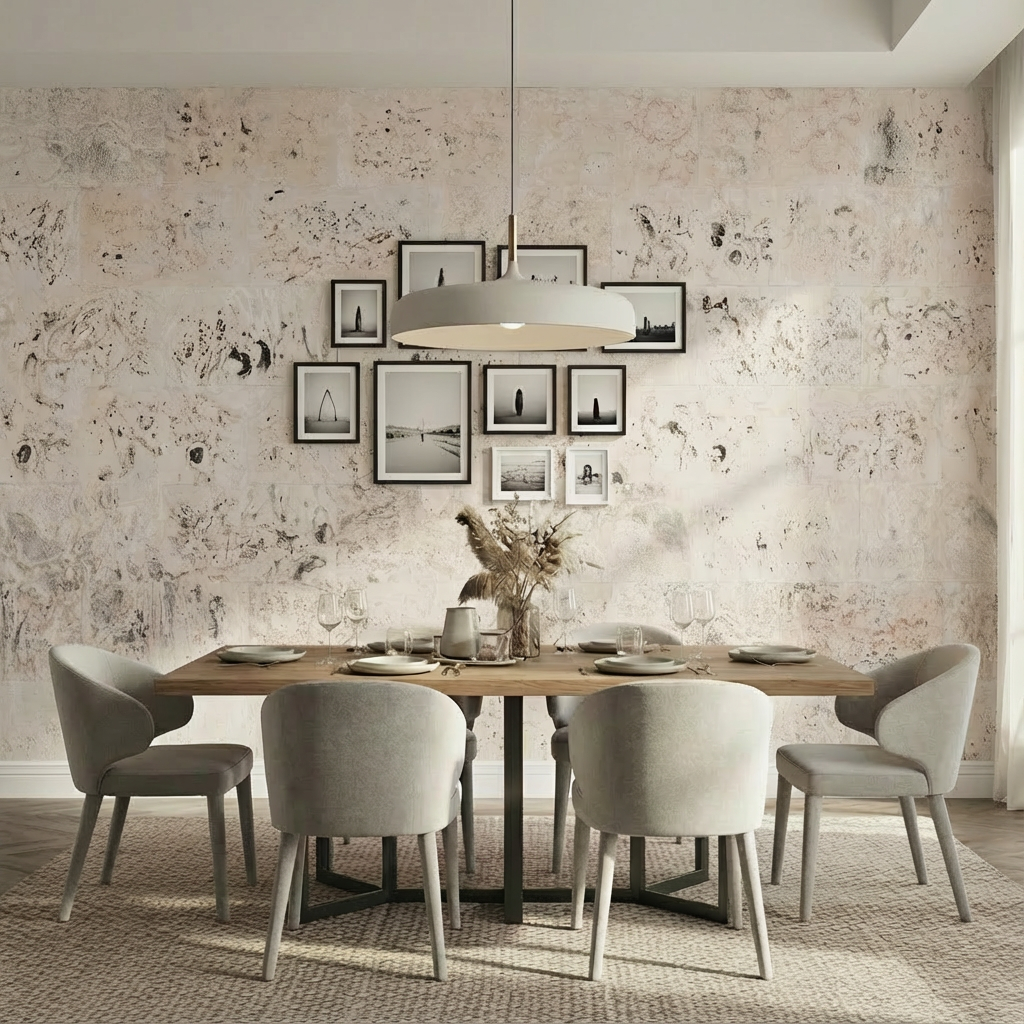 A design inspired by the precisely hewn shell (coquina) stone of coastal fortresses. Unlike the more rustic Vizcaya pattern, this design features coral limestone cut into regular rectangular blocks, offering a cleaner, more formal aesthetic. The "Illusion™" print captures the delicate details of crushed shells and coral fragments embedded in the masonry, providing a sophisticated, architectural look. It's an ideal backdrop for modern minimalist spaces that need a touch of organic warmth and structural order.