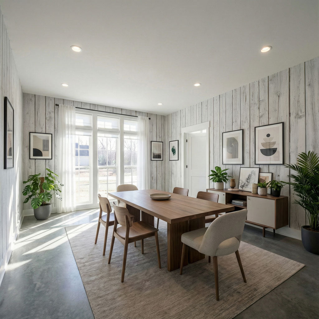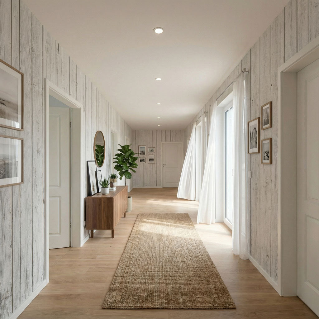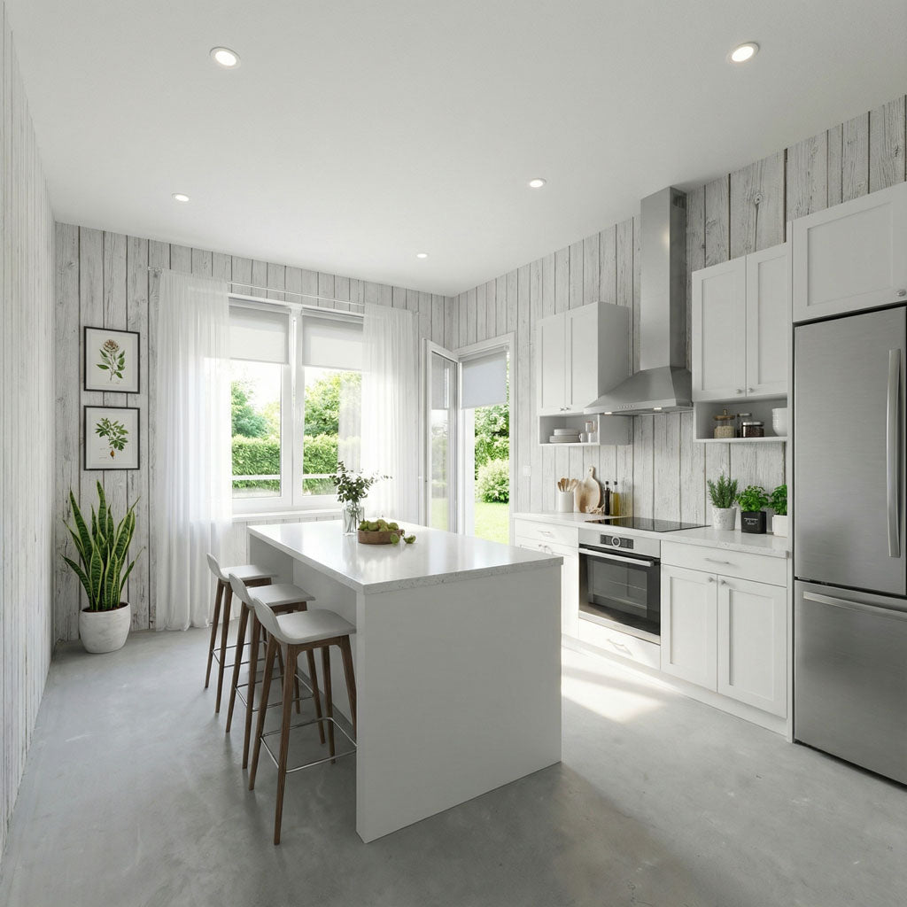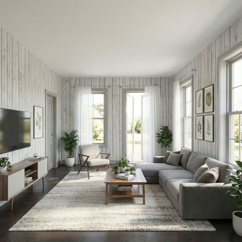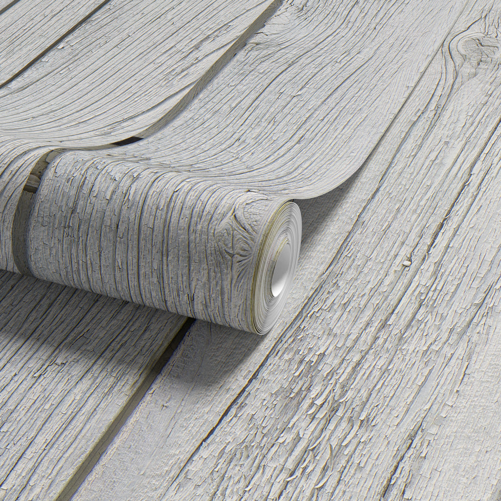 Paying homage to the famous Moroccan surf village, this wallpaper features extremely bleached wood, as if sandblasted by desert winds and Atlantic sea spray. The distressed, shabby-chic finish reveals the raw gray wood beneath the white paint, creating a luminous and vibrant texture. It's the perfect choice for a slow-living bedroom, a summer living room, or an interior with a relaxed, ethnic chic style.