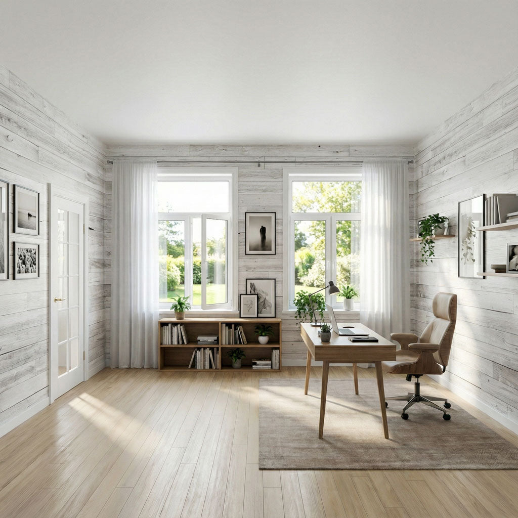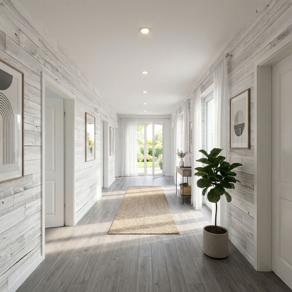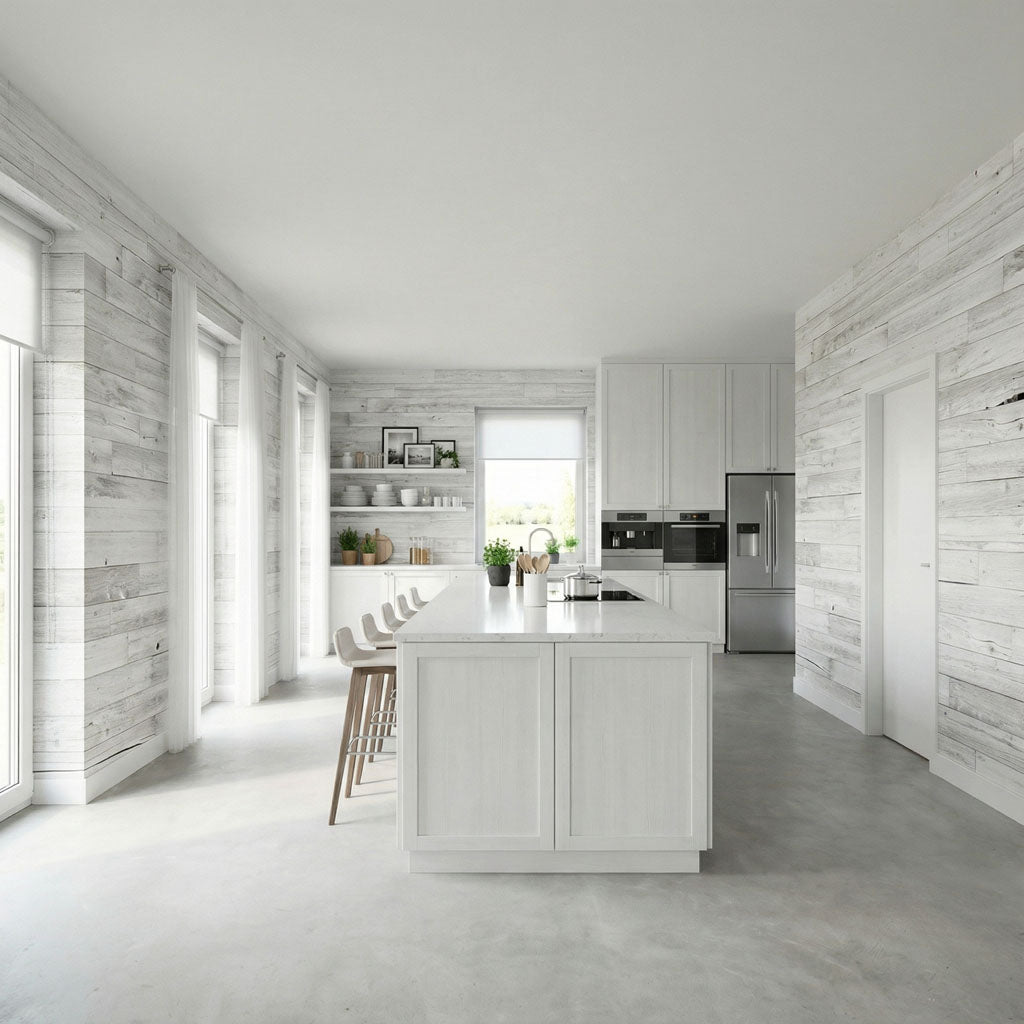This wallpaper captures the "slow life" spirit of the Balearic Islands with its whitewashed horizontal planks, evoking sun-drenched terraces and bohemian interiors of the White Isle. The luminous matte finish visually expands the space and brings instant brightness, while the "Illusion" technology preserves the natural texture of the wood. It's the perfect backdrop for a clean, zen, and decidedly on-trend décor.